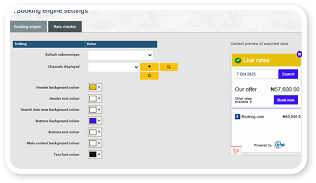 The booking engine pricing control allows your Booking Engine to always provide the best value to your clients, ensuring a high number of direct bookers.